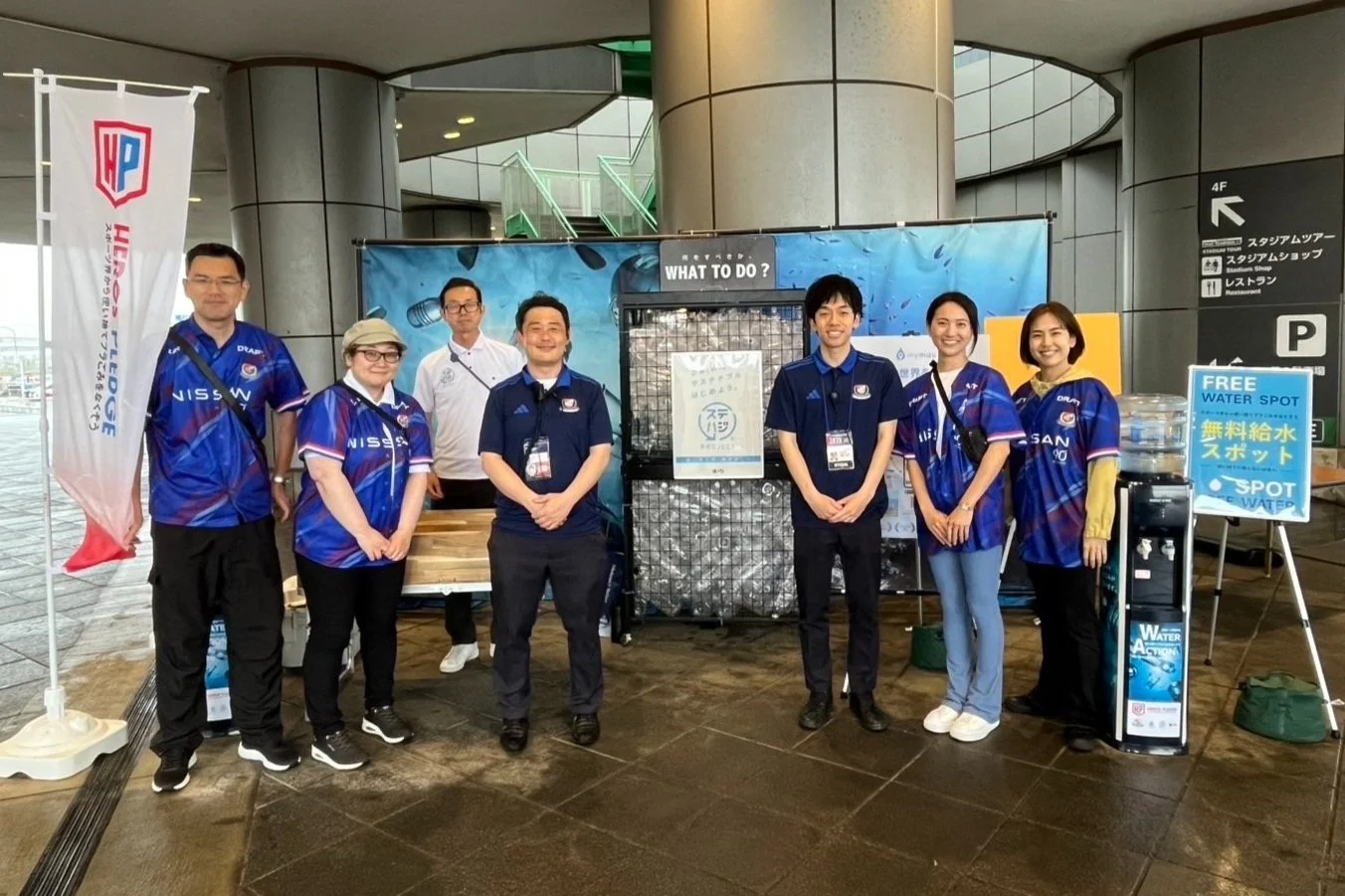 In May, we set up refill stations and an engagement booth at Nissan Stadium in Yokohama during the Yokohama F. Marinos vs. Kyoto Sanga FC match, as part of HEROs PLEDGE, an initiative aiming for zero single-use plastic waste.