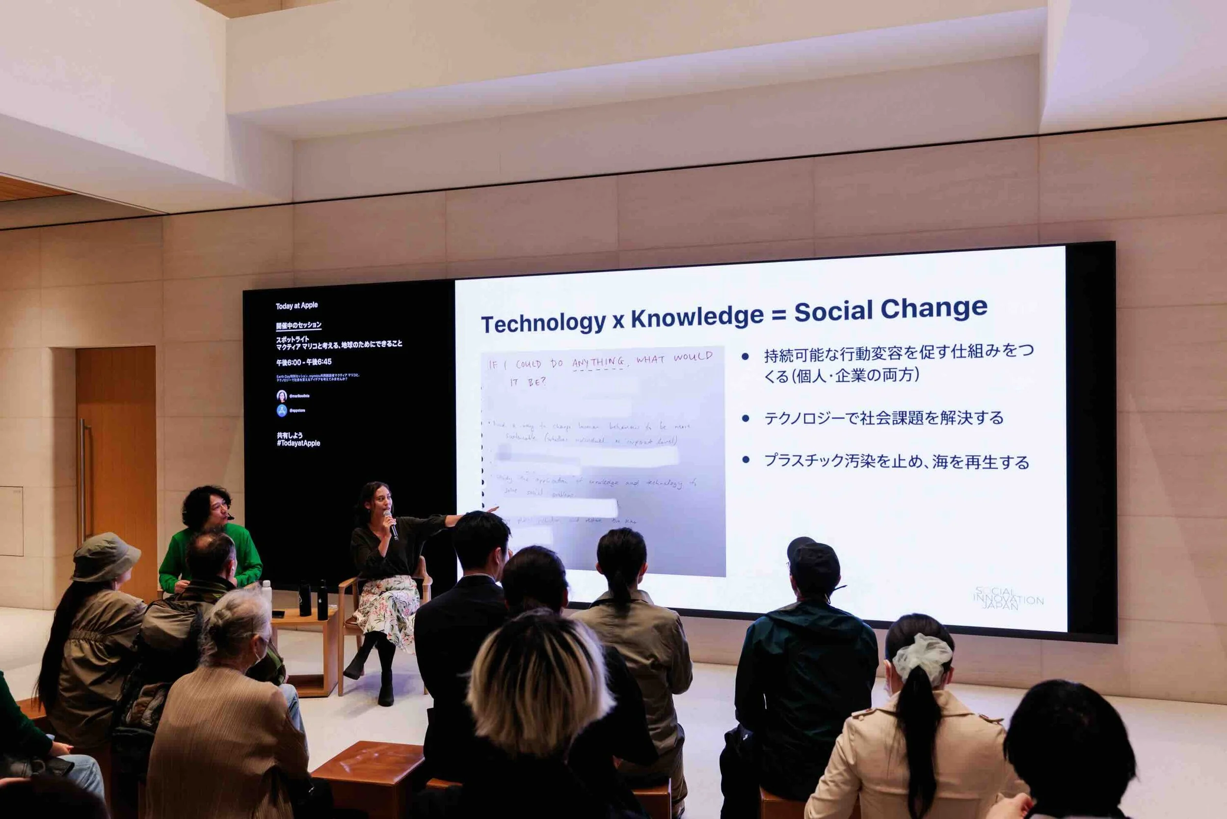 4月23日、mymizu共同創業者・共同代表のマリコが、Apple丸の内にて「Today at Apple」Earth Dayセッションに登壇しました。